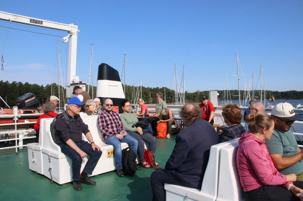 Matka aloitettiin pikkubussilla Turusta kulkien Saaristotietä lukuisten siltojen yli ja yhden lauttamatkan päähän Nauvoon. Nauvossa jätettiin matkatavarat majapaikkoihin ja jatkettiin matkaa m/s Östern-laivalla Seiliin. Sää oli kaunis ja lämmin, joten puolen tunnin matka vietetiin kannella.